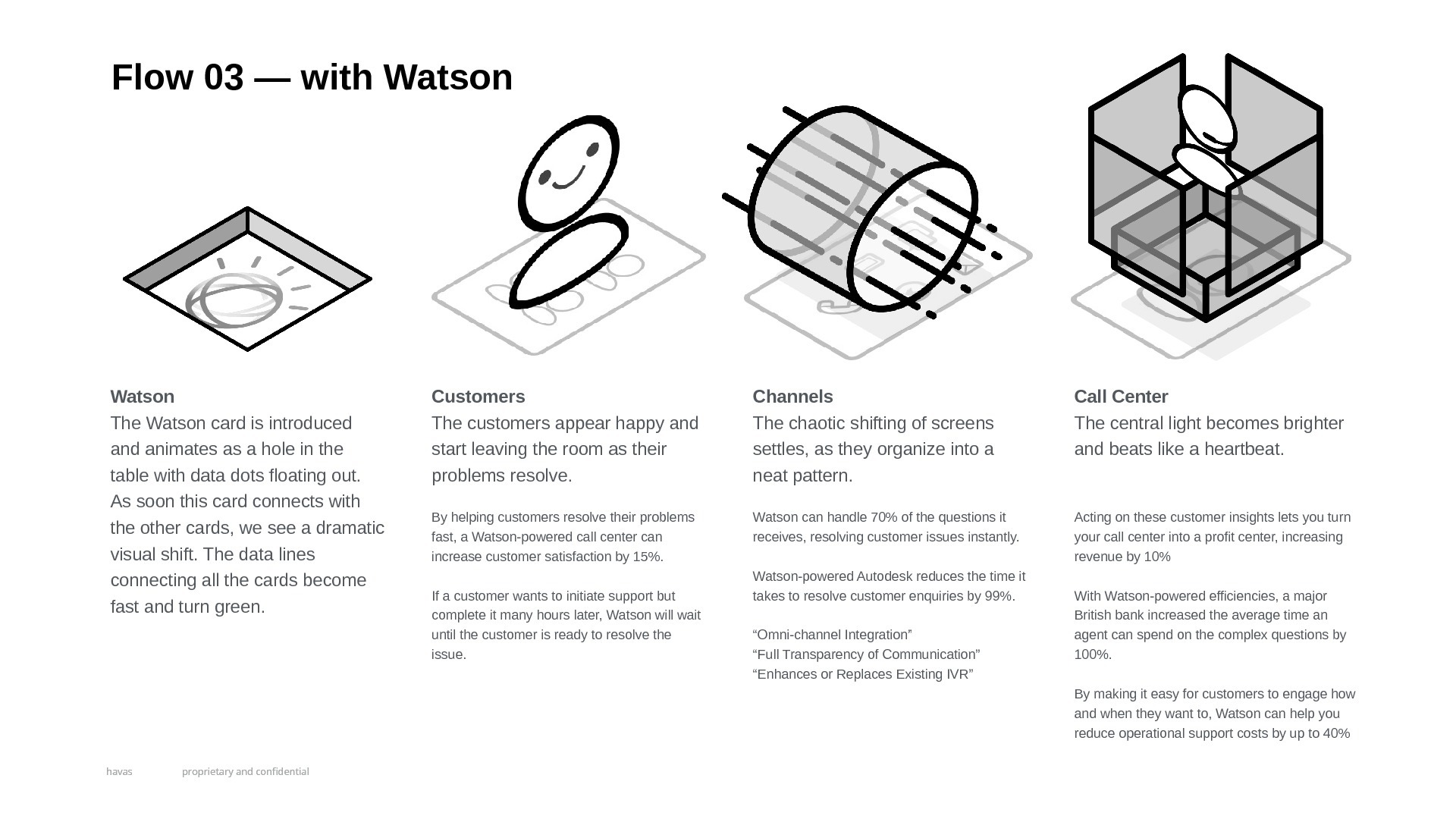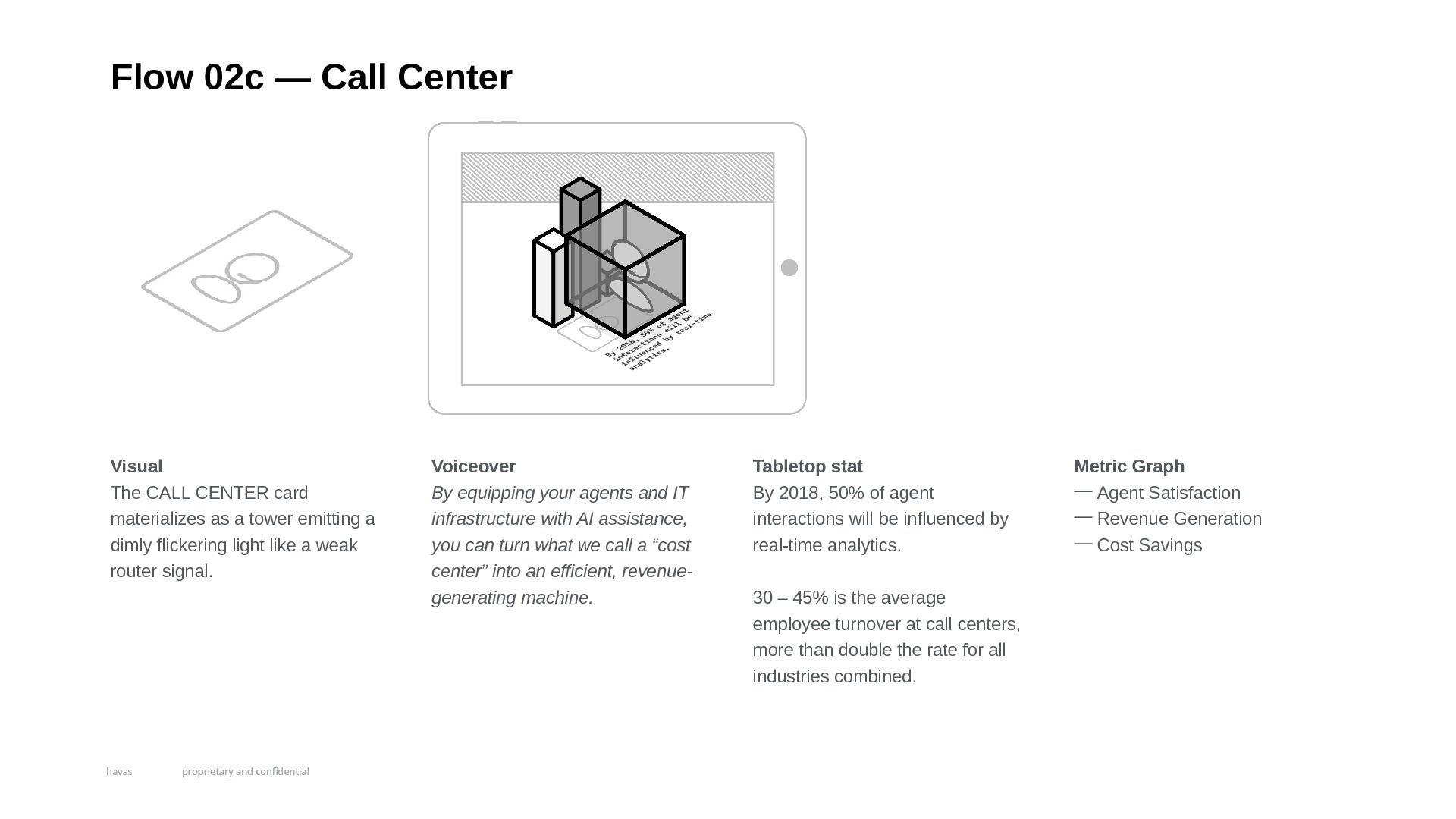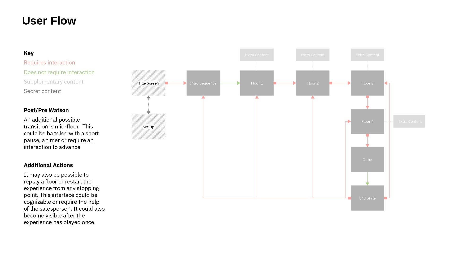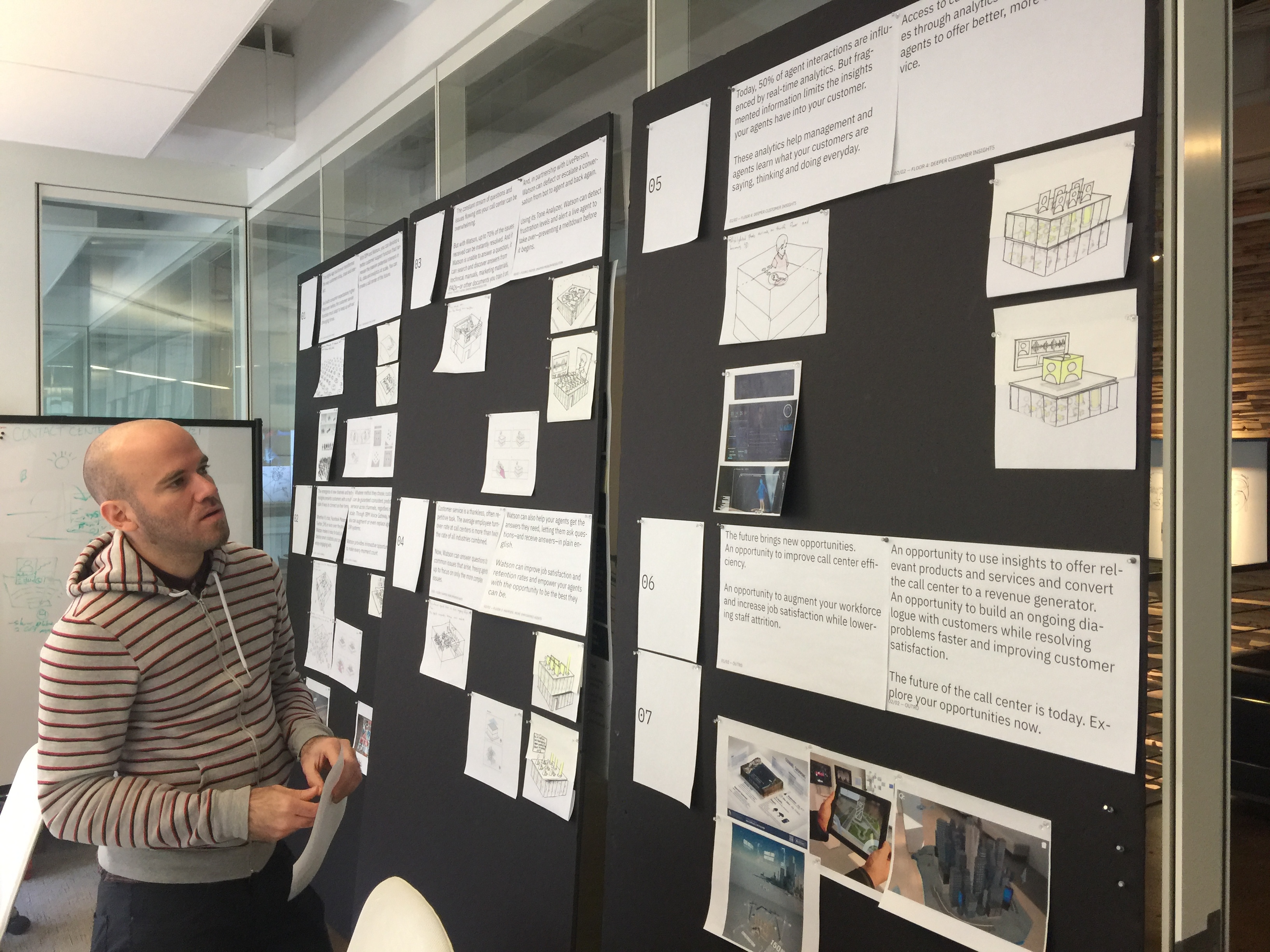 Initial interviews led to an outline of objectives, which were translated into potential experiences. I sketched out scenes with a copywriter during a working session with the client. Cardboard prototypes were used for story boarding the future 3D models.
