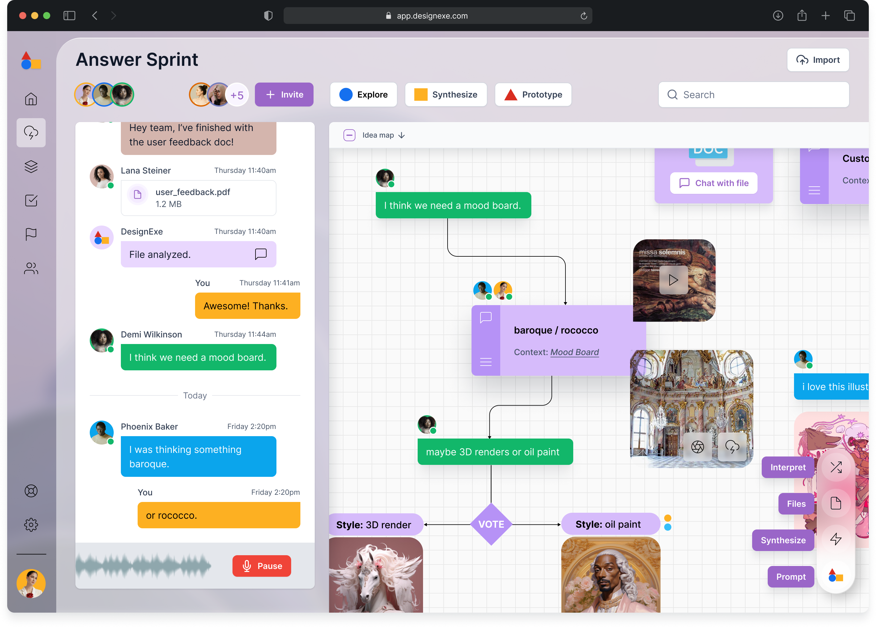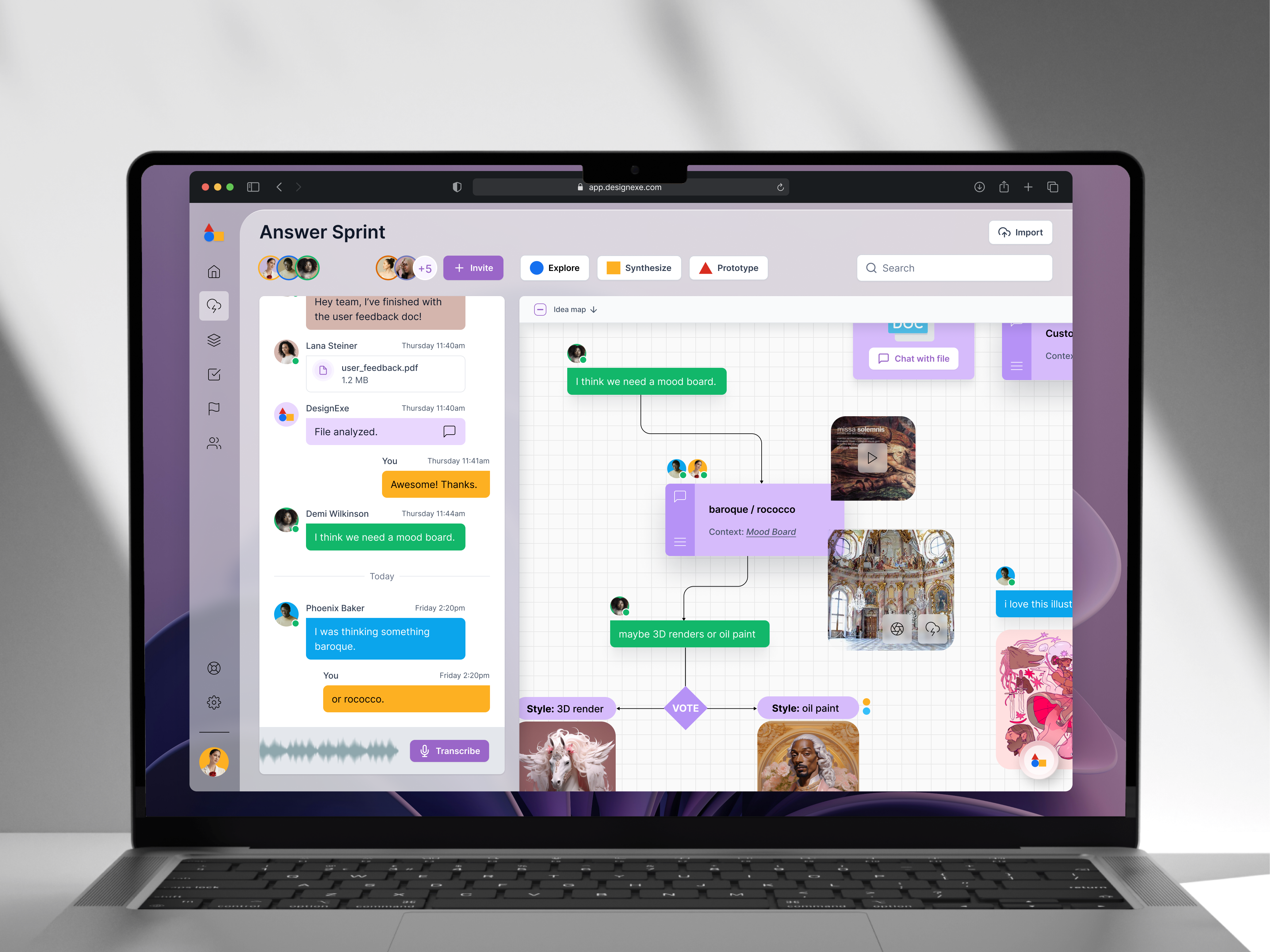 Concepts for an AI assissted design research application. Assistance is provided for all stages of the design process.