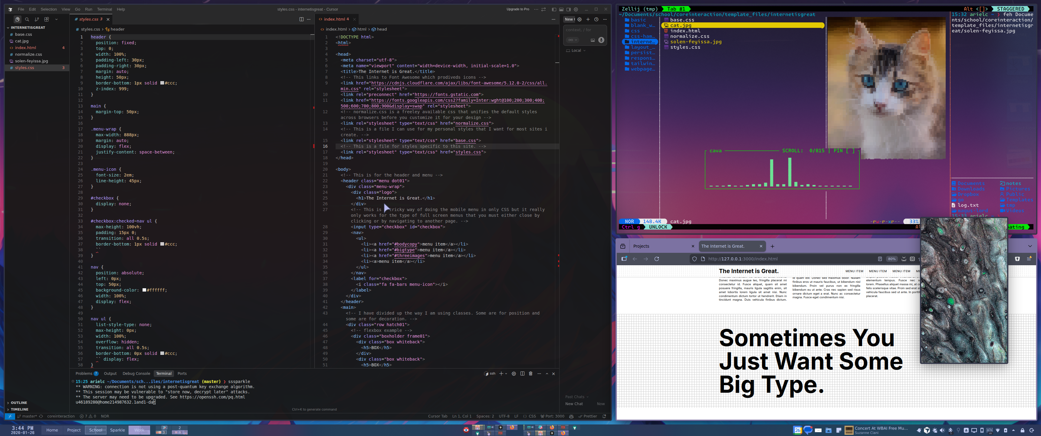 A foundational course in interactive web design and development. Students progress from basic HTML and CSS to complex JavaScript interactions and animations.